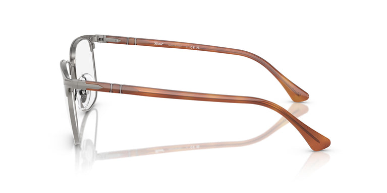 Confecționate cu stilul italian caracteristic al lui Persol, aceste rame optice combină o față metalică pătrată cu templele elegante din acetat. Profilele subțiri asigură o purtare fără efort, în timp ce emblematicele Supreme Arrow, Meflecto și opțiunile de culoare adaugă o notă de moștenire. Culorile coordonate includ maro cu Havana, negru cu negru și auriu cu Miele, cu o opțiune în două tonuri de gunmetal cu terra di siena. Partea frontală pătrată din metal este combinată cu temple subțiri din acetat, cu simbolul Meflecto argintiu.