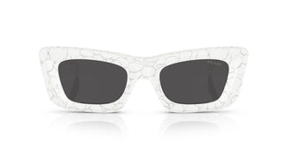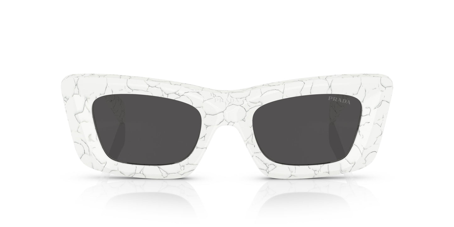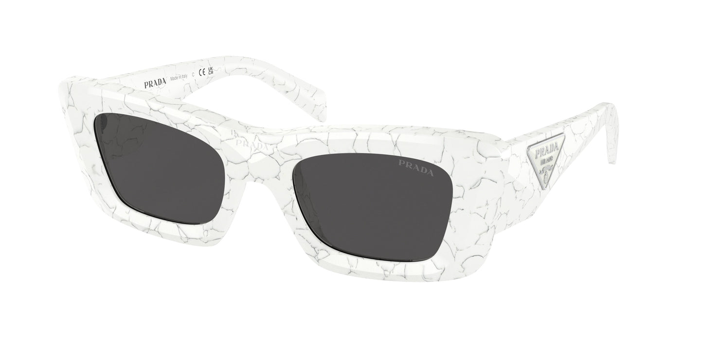 Viziunea futuristă a lui Prada este evidentă în acest model îndrăzneț din acetat. Formele groase de acetat, atât pe față, cât și pe tâmple, sunt îmbogățite cu logo-ul triunghi al genții Prada Cleo. Cadru îngust de acetat, cu un design cu mai multe fațete, care creează geometrii îndrăznețe. Design nou logo triunghi inspirat de iconica geanta Prada Cleo.