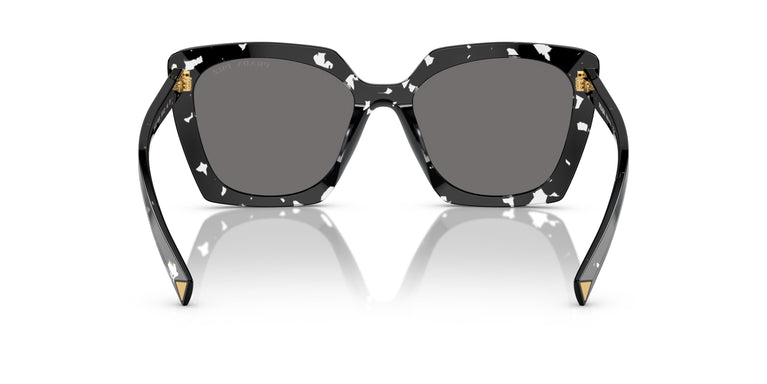 Reintroducând volume mai subțiri de acetat, dar totuși cu factorul wow, Prada se inspiră din propria moștenire. Acest stil prezintă semnătura subtilă, dar recunoscută pe templele subțiri din acetat, în timp ce partea din față prezintă un design îndrăzneț, cu mai multe fațete. Rama pătrată cu mai multe fațete, cu detalii metalice triunghiulare, contrastează cu templele elegante din acetat, cu un logo subtil. O gamă largă de culori include lentile polarizate pe modelul verde închis/negru.