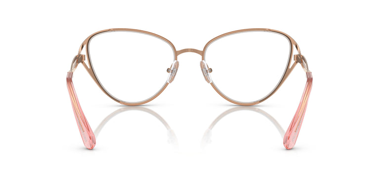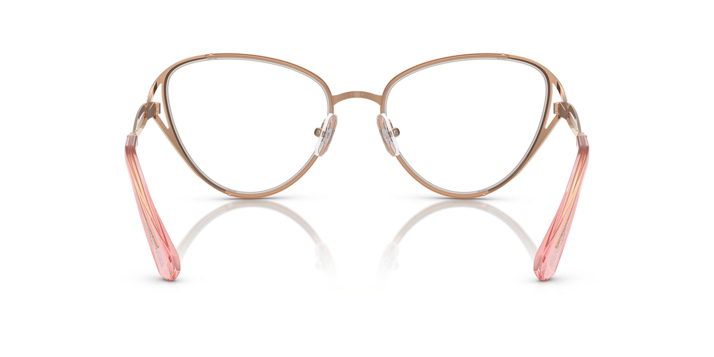 Într-o expoziție de strălucire și structură, acest model optic reflectă lumina în cristalele podului și partea superioară a tijelor, simbolizând infinitul. Rama ochiului de pisică emană eleganță, completată cu terminale transparente pe tije care aduc o notă de sofisticare și bucurie. Cu o structură metalică elaborată, podul și partea suprapusă a tijelor au fost decorate cu cristale delicate Swarovski. Swarovski optează pentru nuanțe pentru cristale și terminale care se potrivesc cu metalul ramei, cum ar fi maro și umbre aurii.