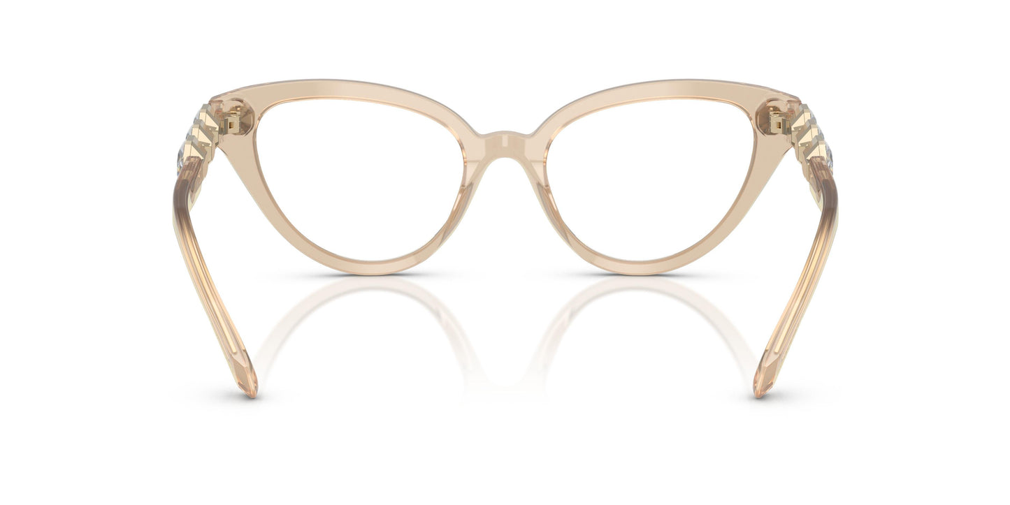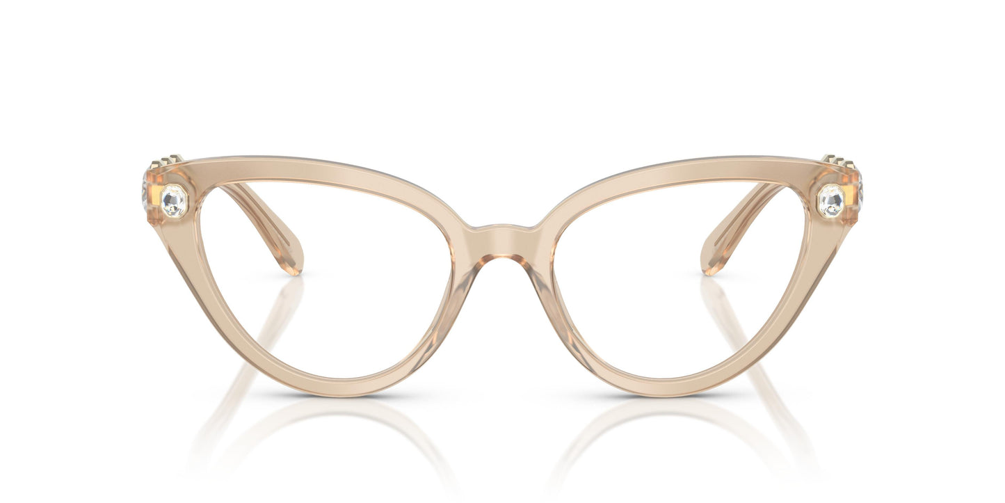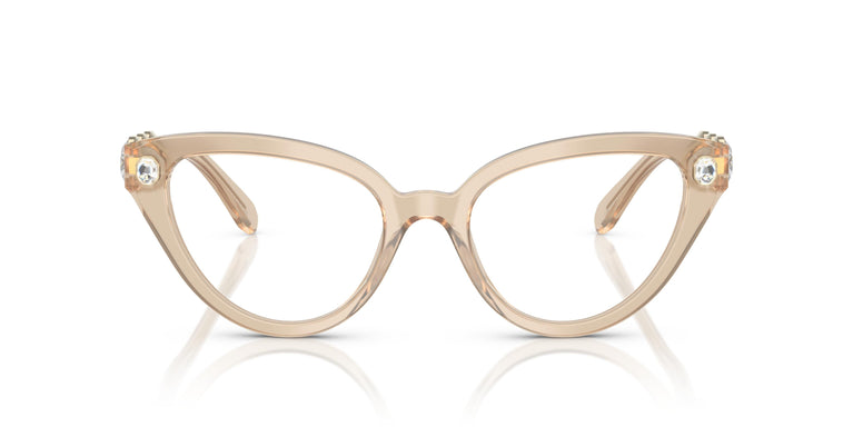 Cristalele octogonale luminoase din familia millenia aduc bucurie chiar și celei mai clasice rame, precum cea de ochi de pisică. Acest model de optică din acetat este o creație de neconfundat a Swarovski, cu cristalele sale octogonale montate în partea frontală și pe tijele ochelarilor. Trei cristale pe fiecare tijă într-o ramă metalică sofisticată creează forma octogonală caracteristică Swarovski. Swarovski surprinde cu trei opțiuni transparente precum bej cu cristale transparente și roz cu cristale light rose asortate.