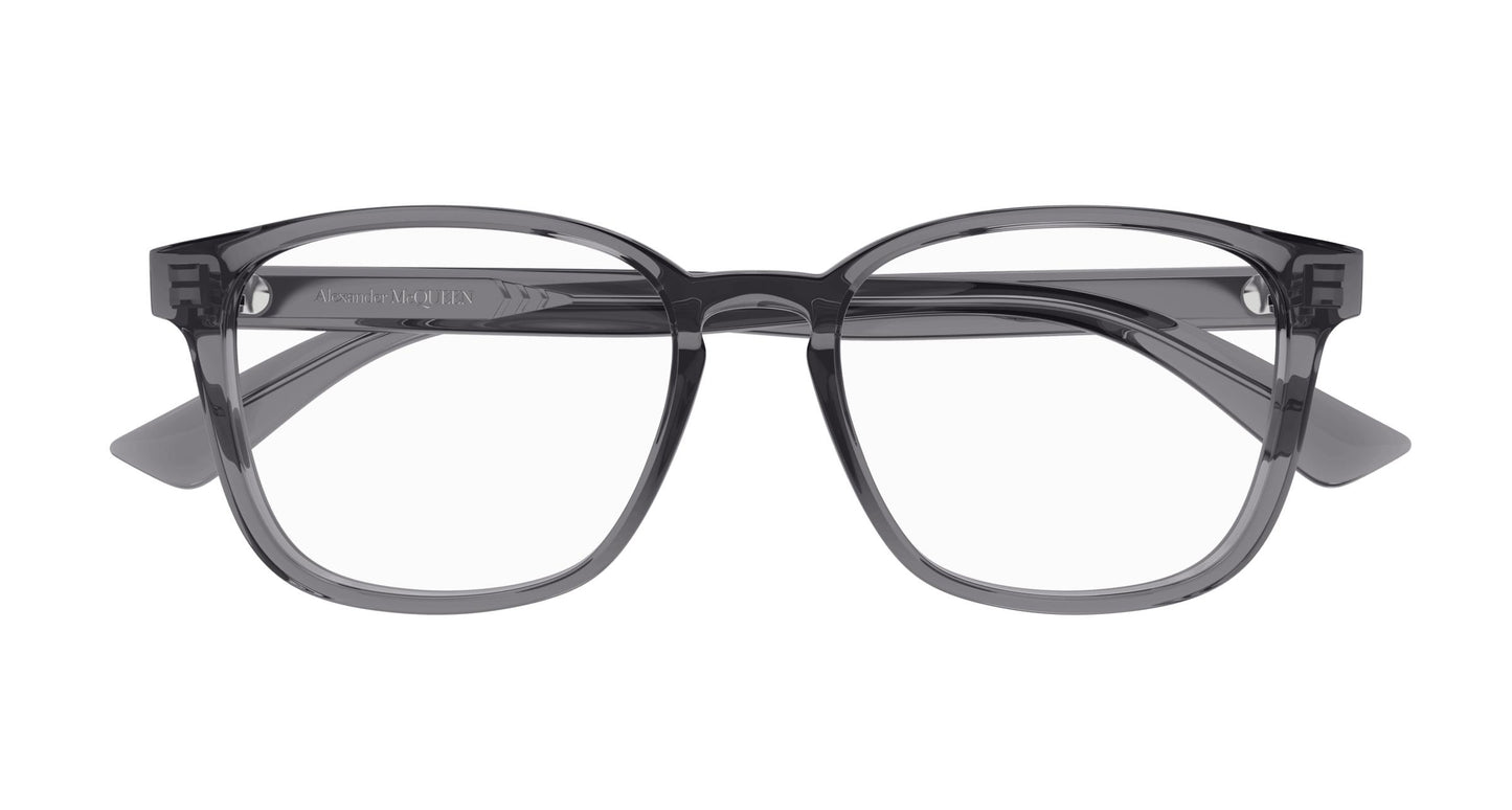 Signature Essential frammanar Alexander McQueens rena, klassiska själ genom en lätt, lätt att bära kollektion. En maskulin rektangulär design gjord av lätt acetat. Logotypen har lasergraverade och silveremaljerade bokstäver. Färgpaletten innehåller kommersiella och mer moderna nyanser i transparenta toner som grått, nude/puder och brunt/brunt.