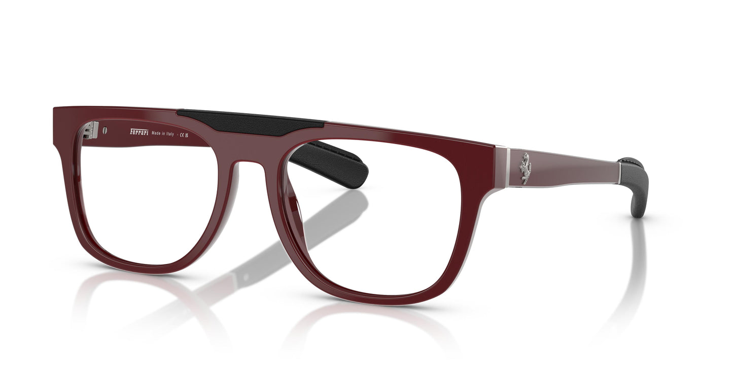 En uppvisning av modern design och utsökt italienskt hantverk med unisex-attraktionskraft. Vinklade former, glänsande acetat och lyxigt läder kombineras för att skapa en strukturerad finish på rektangulära ramar. En lyxig optisk stil med anpassade detaljer som speglar Ferrari-märkets designarv. En slät acetatfront med en kontrasterande lädersektion påminner om designen hos Ferraris lyxbilar. Metallisk utsmyckning och specialsytt läder förstärker de skulpterade acetatskallarna.