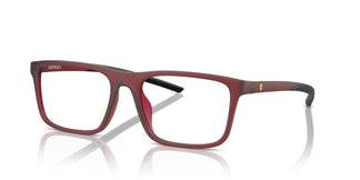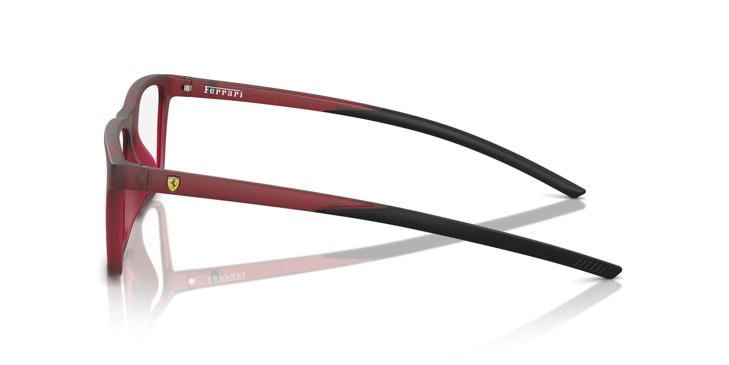 Denna rektangulära modell, bortom traditionen, tilltalar hög prestanda och har näskuddar av gummi och tinningar. På sidan pryder Scuderia Ferrari-skölden tinningarna, medan intensiva toner frammanar racerbilens distinkta färger. Rektangulär optisk ram med en lätt injicerad struktur och näskuddar av gummi och tinningar. Den visar upp motorsportarvet med Scuderia Ferrari-skölden på tinningarna och distinkta färger.
