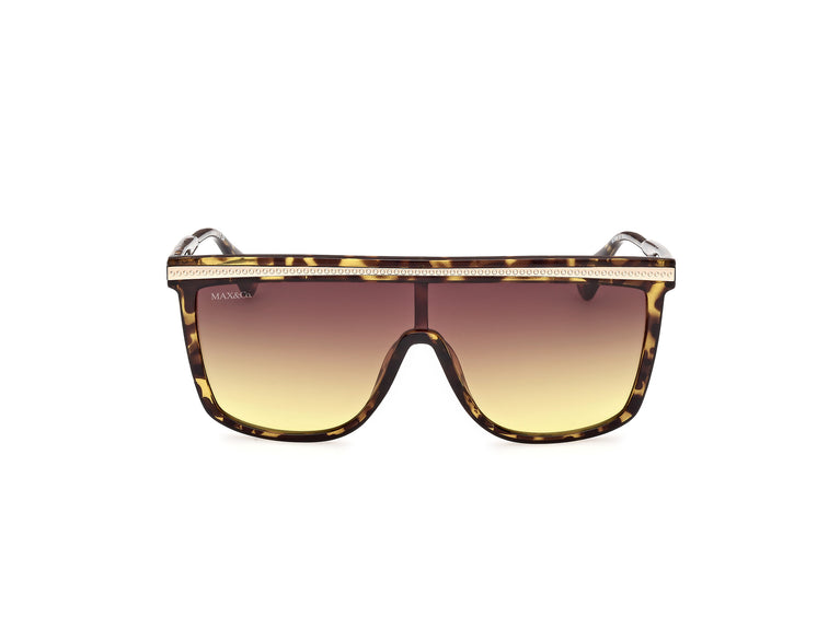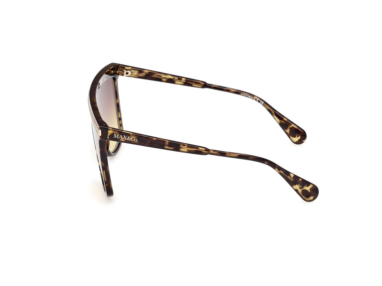 Utforska sofistikering med Max&co MO0099 solglasögon. Denna Navigator-modell, designad för kvinnor, kombinerar en ram av injicerat material i en elegant fläckig Havanna-färg som elegant kramar ansiktet. De delikat skulpterade tinningarna smälter samman sömlöst med bron och erbjuder en sublim passform. De bruna linserna ger en touch av mystik och skydd och förvandlar varje blick till en resa mot det extraordinära. Ett måste tillbehör för den som söker stil och elegans.