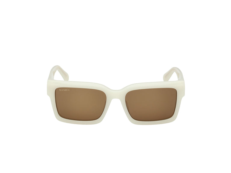 Upptäck essensen av elegans med Max&Co solglasögon, modell Mo0132. Dessa glasögon är designade för den moderna kvinnan och har rektangulära bågar i en sofistikerad, blank nyans av elfenben som sticker ut för sin delikatess. De noggrant skulpterade templen förenas av en bro som garanterar komfort och stil vid varje användning. Roviex-linser ger en touch av mystik och skydd, vilket gör dessa glasögon till ett måste-ha-tillbehör för dem som söker en distingerad och tidlös look.