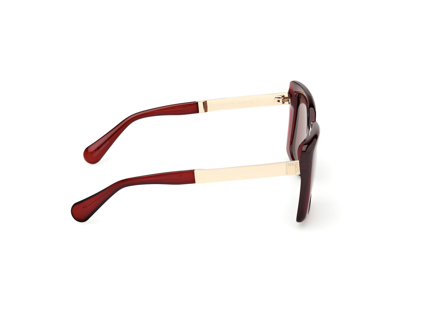 Upptäck Max&co MO0134 solglasögon, en perfekt blandning av stil och distinktion för den moderna kvinnan. Ramen av injicerat material i en elegant, glansig mörkröd omsluter subtilt fyrkantiga bruna linser, skapade för att förstärka din blick med en touch av sofistikering. De noggrant designade skalmarna integreras med bron och erbjuder en bekväm och säker passform. En design som förkroppsligar essensen av samtida elegans i varje detalj.