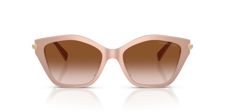 Den oregelbundna acetatsilhuetten erbjuder en unik twist på en tidlös design, medan metalliska nitar vid skalmarna ger en touch av rebellisk glamour. Eleganta metalltindlar kompletterar utseendet av lyx och attityd. De främre knoppdetaljerna vid tinningen är inspirerade av Michael Kors legendariska Astor-hårdvara. Universal passform för ett brett utbud av ansiktsformer och storlekar.